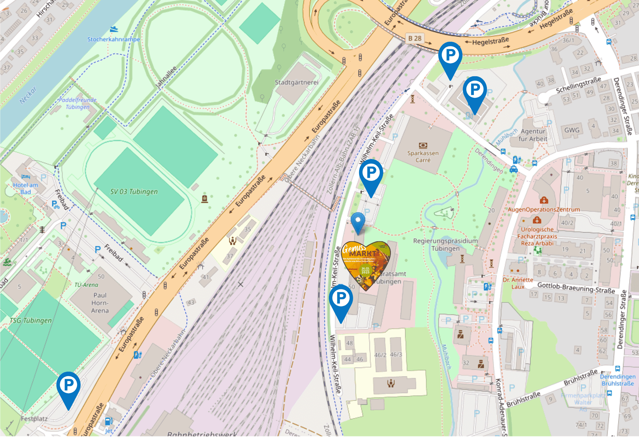 Unter dem Motto „oifach guad aus’m Kreis Tübingen“ findet am Freitag, 14. November 2025 und Samstag, 15. November 2025 jeweils zwischen 10 und 20 Uhr erstmals ein Genussmarkt im Landratsamt Tübingen statt. Dabei präsentieren sich über 40 Direktvermarkter mit regionalen Produkten und Spezialitäten der Öffentlichkeit. Ein vielfältiges Rahmenprogramm rundet das Genusserlebnis ab. Mit dem Genussmarkt soll die Bedeutung der heimischen Landwirtschaft einem breiten Publikum zugänglich gemacht werden.