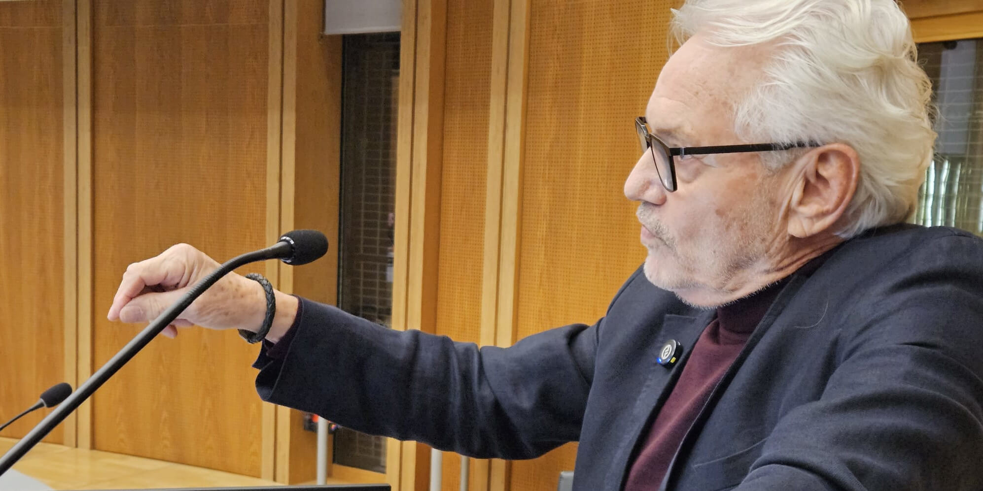 Über seine außergewöhnliche Familiengeschichte, eine mehr als 300 Jahre bestehende Ansässigkeit in dem schwäbischen „Judendorf“ Baisingen, berichtete der Arzt Dr. Fredy Kahn am Dienstag, 4. November 2025, im vollbesetzten Großen Sitzungssaal des Landratsamts Tübingen. Er erzählte unter anderem von der Heimkehr seines Vaters Harry Kahn nach vier Jahren in Konzentrationslagern sowie dessen Neubeginn als Viehhändler und seinen persönlichen Erfahrungen als Jude im Nachkriegsdeutschland.